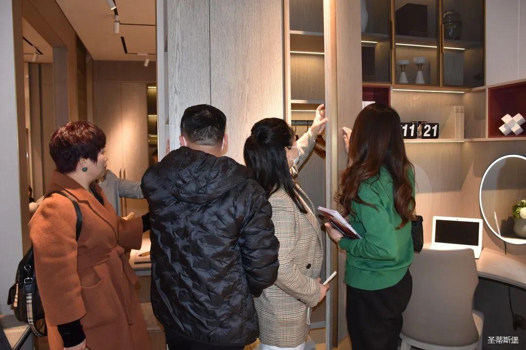展廳內,專業的導師為嘉賓們詳細介紹了產品工藝特點、整體造型特色、裝飾元素以及色彩搭配等;還有全屋定制、固裝、營銷等部門高管,與經銷商熱情的交流溝通,并為大家講述了圣蒂斯堡的原創設計理念。“洛斯”主打的差異化輕奢,更是贏得了在場經銷商家人的高度贊譽;圣蒂斯堡用實際行動證明了在家居界不可比擬的產品優勢和實力。