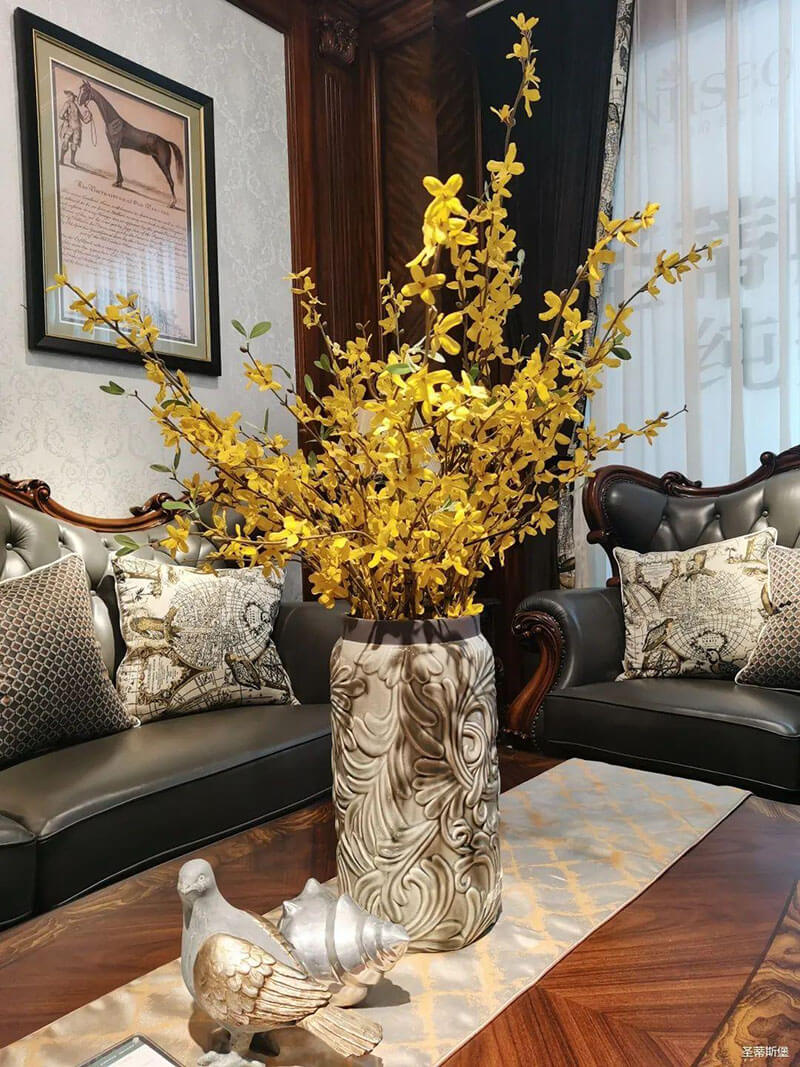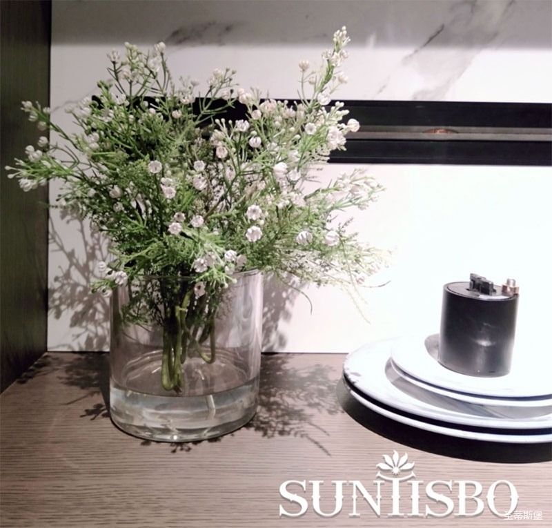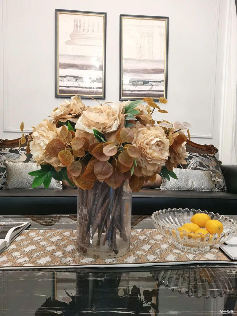 3.輕奢的配飾也需邀來似錦繁花相稱。色彩跳脫的植物更為亮眼,讓自然界的色彩與姿態應和空間之間的協調,傳遞空間與情感的共鳴。