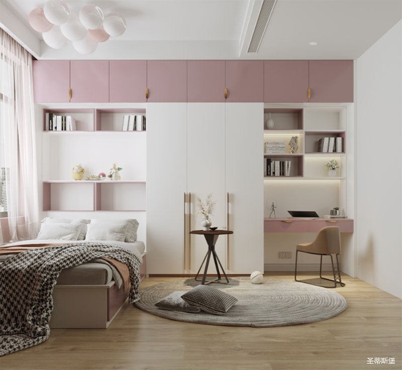 迷人的靜謐最為溫柔,在淺粉與純白之間,融合著舒適與少女心并存的空間感受。坐臥對(duì)立分隔,形成了兩個(gè)空間的生活體驗(yàn),完美的實(shí)現(xiàn)了功能與美感的結(jié)合,靈動(dòng)內(nèi)斂之余,獨(dú)具深意,營(yíng)造出更具溫暖與時(shí)尚化的少女空間。