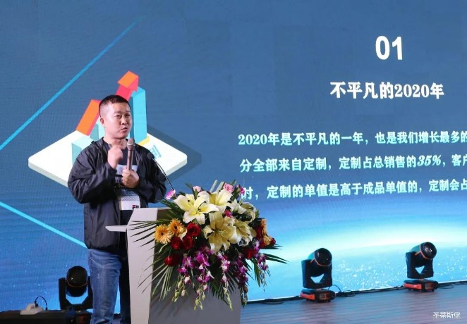 華燈璀璨的開場儀式,點(diǎn)燃了現(xiàn)場如火如荼的氣氛。今年會(huì)集團(tuán)集團(tuán)營銷總經(jīng)理陳玉偉先生對(duì)晚會(huì)進(jìn)行了主題發(fā)言,他對(duì)2020年的營銷工作進(jìn)行了總結(jié),并著重從營銷工作部署、重點(diǎn)項(xiàng)目開展、產(chǎn)品整合、拎包幫扶、渠道運(yùn)營和移動(dòng)+定制整裝優(yōu)勢等方面對(duì)2021年的營銷工作做了全面的統(tǒng)籌規(guī)劃。同時(shí),他還講解了“美國夢凱莎床墊”新品的產(chǎn)品工藝、市場優(yōu)勢、產(chǎn)品定位,使經(jīng)銷商對(duì)我們的新產(chǎn)品擁有更深入的認(rèn)識(shí)和了解。
