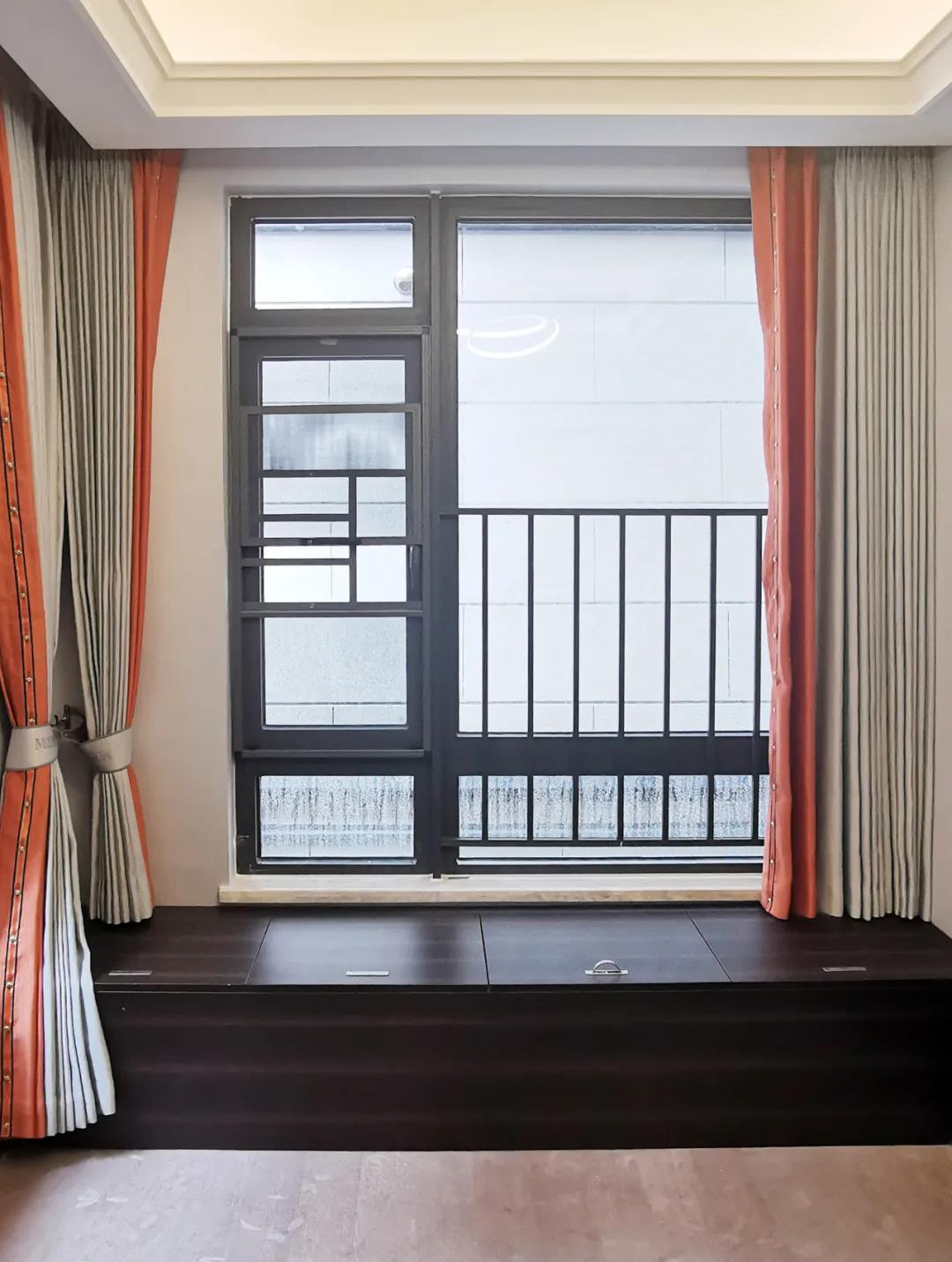 三樓的主人房設計風格更偏向簡約,浪漫的酒紅色床屏運用了曲面造型,融合了極簡主義美學和輕奢元素,小型夜間感應燈設計讓每一處細節都充滿著時尚優雅的氣息。夜間倚靠在厚實的軟包上,時光好像在不知不覺中慢了下來,讓我們能品味和咀嚼生活的氛圍。