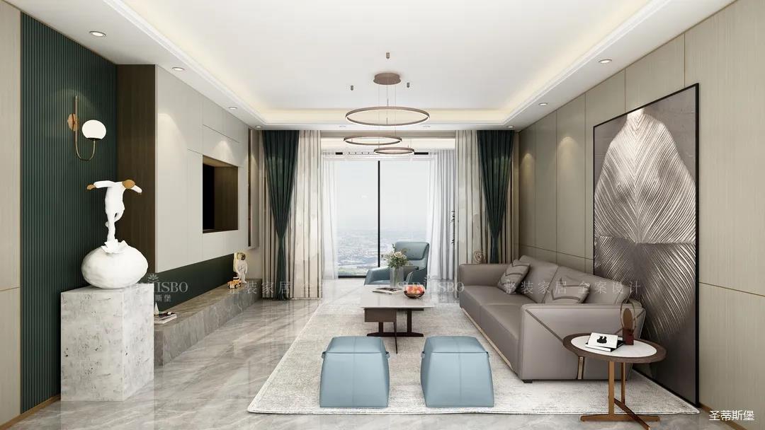 白綠搭配作為當下時尚界的黑馬,一個沉著冷靜,一個高級清新,相互碰撞出前所未有的視覺享受。純白異型藝術(shù)雕塑是室內(nèi)和諧的體現(xiàn),也讓空間洋溢著趣味性。