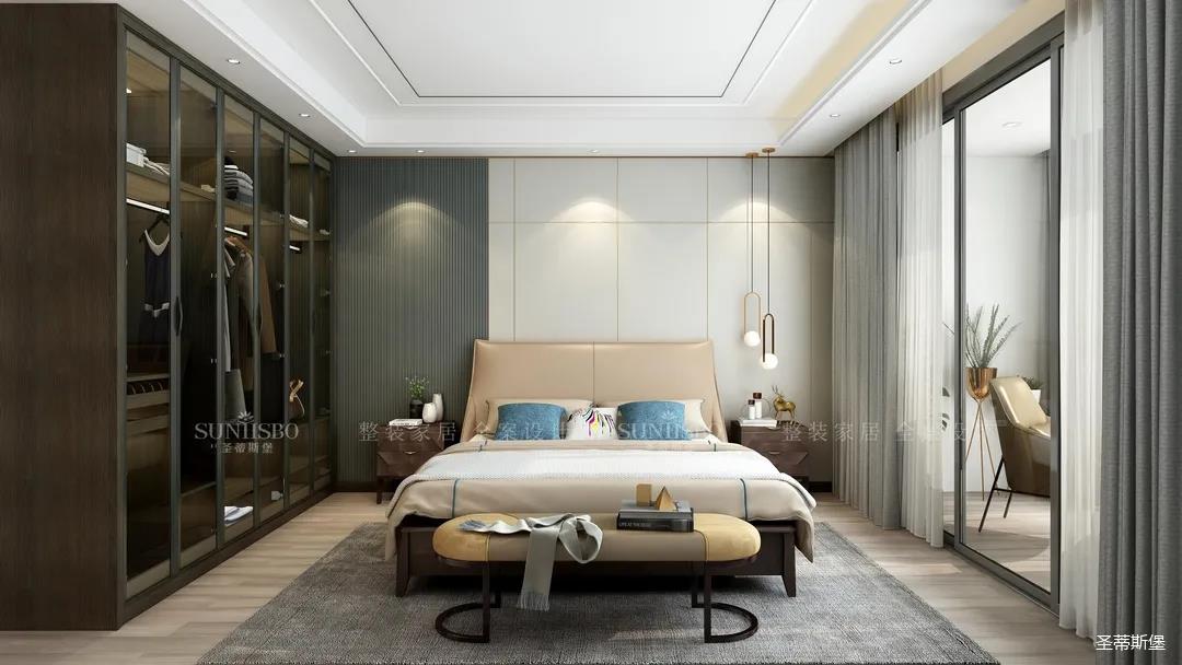 次臥床頭是現(xiàn)代感十足的格柵設(shè)計,簡約精致又頗具深度朦朧感。豎條紋的格柵還能起到拉伸視覺的作用,主觀上提高了空間的開闊感。定制衣柜則根據(jù)空間整體的簡約調(diào)性,將開放式與隱蔽收納五五分,散發(fā)出高貴沉穩(wěn)的優(yōu)雅氣質(zhì),和生活品味形成了恰到好處的平衡。