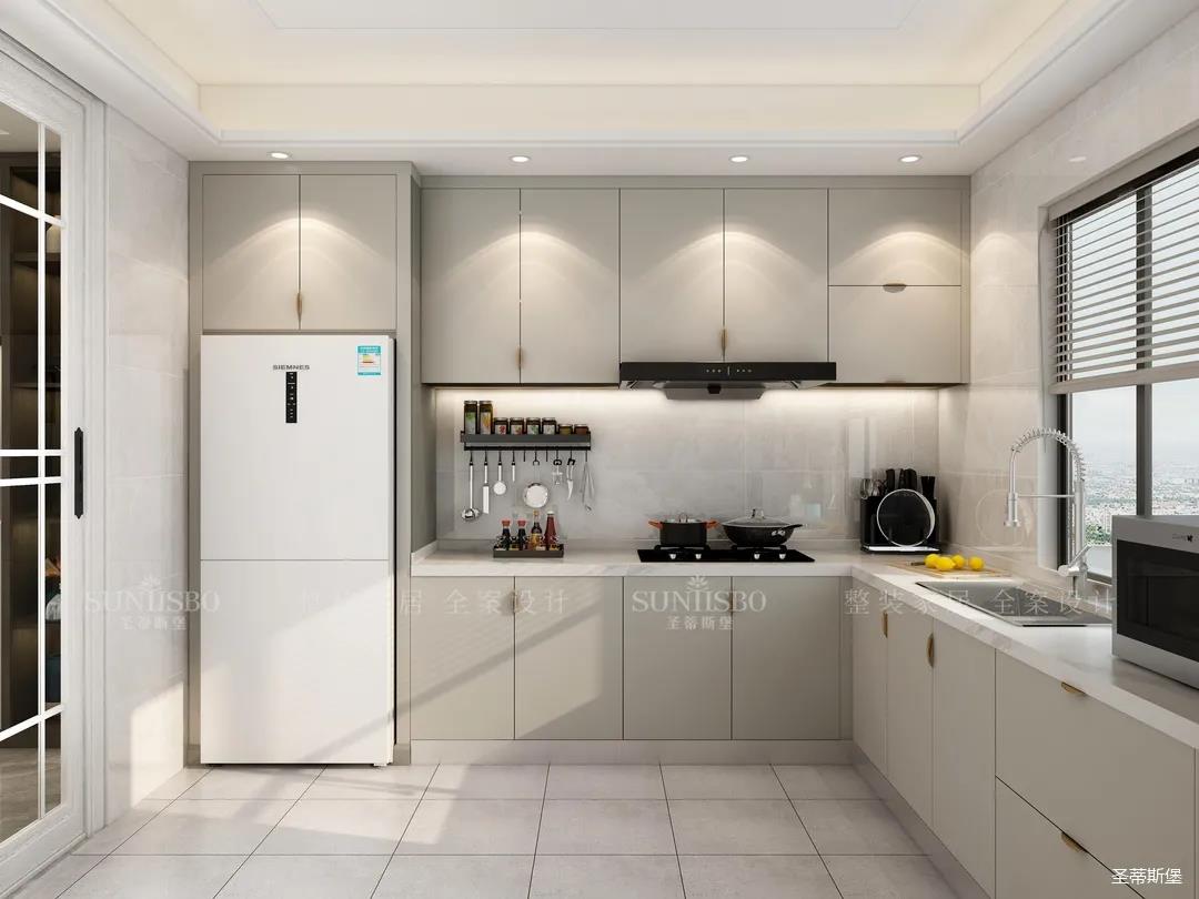 客餐廳、廚房的極簡風(fēng)格和諧統(tǒng)一,鑒于現(xiàn)代家庭中日益增加的廚房電器設(shè)備,設(shè)計師在用廚動線上頗為用心,L型的動線將生活習(xí)慣自然的融入整體家居之中。保持著中性簡約的調(diào)性,運用溫潤的實木材質(zhì)與剛毅的線條,營造出摩登時尚的氛圍。將廚房區(qū)域自然融入整體家居之中。保持著中性簡約的調(diào)性,用溫潤的原木材質(zhì)或是圓潤的曲線線條,平衡空間的冷峻。