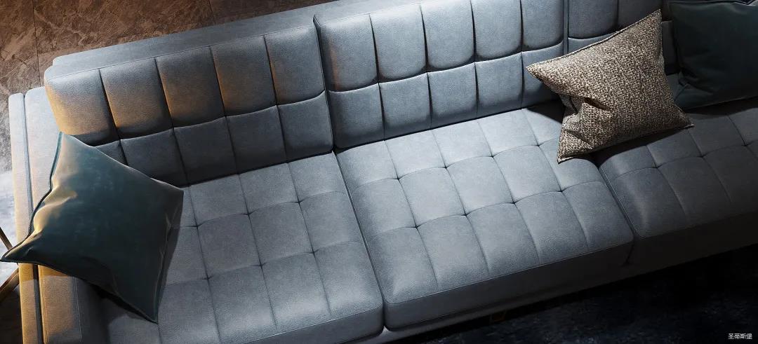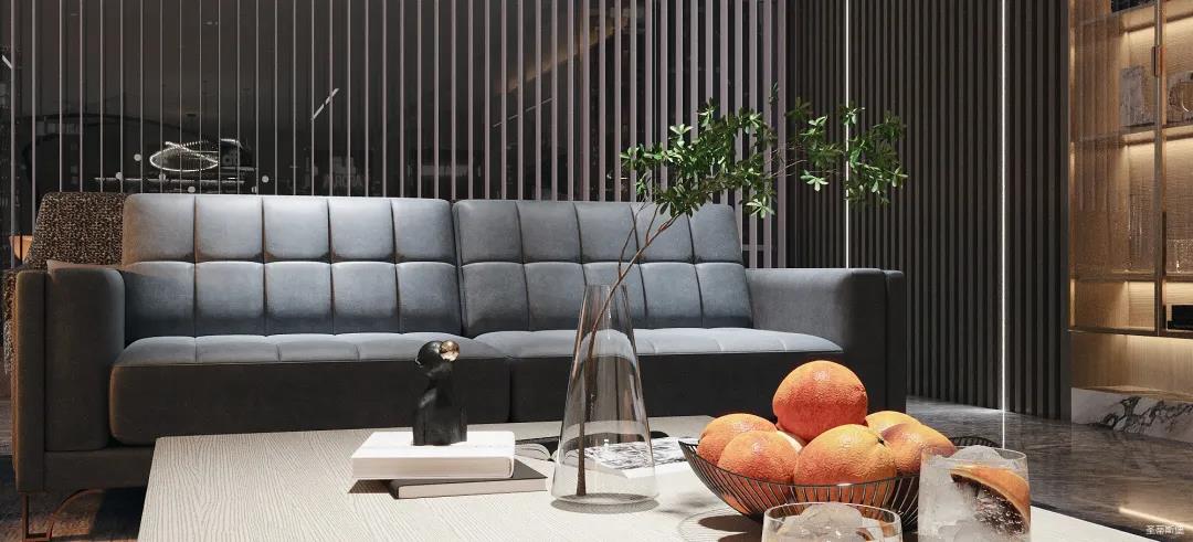 極具細節(jié)考究的“霸氣”沙發(fā),從霧霾藍的色彩中彰顯著業(yè)主沉穩(wěn)氣質(zhì)與時尚品位。線條規(guī)律整齊,方塊式的設計,以摩登時尚演繹著優(yōu)雅的幾何美學力量。