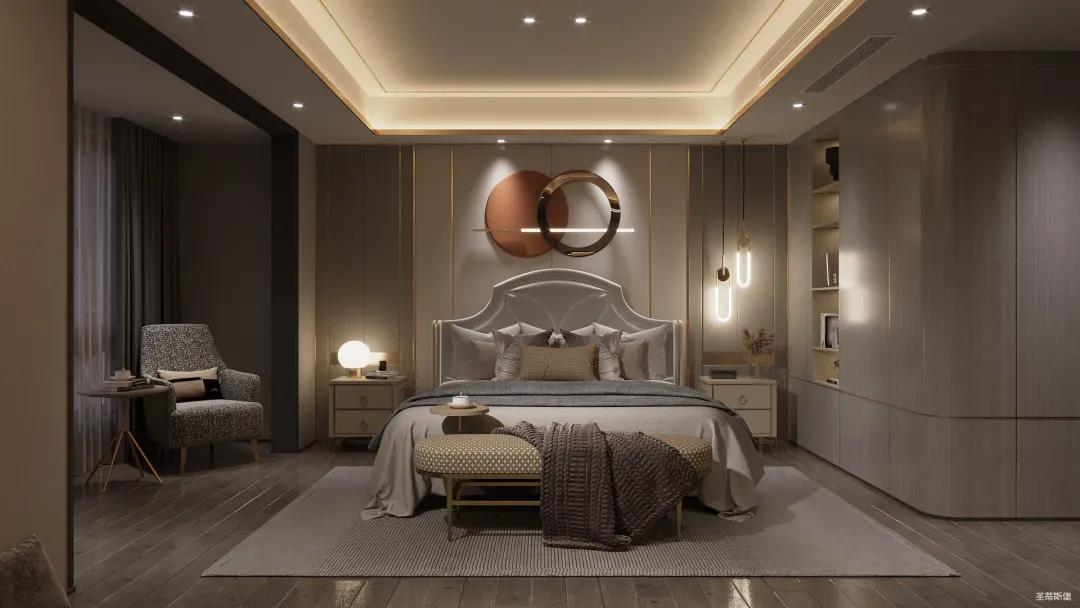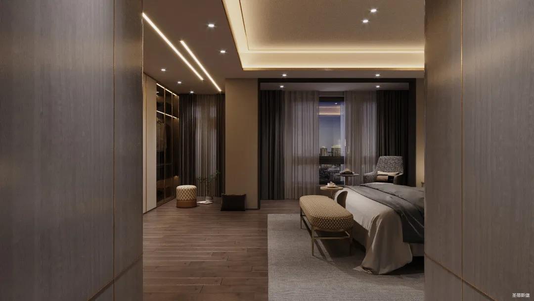 臥室空間整體以護墻板定制為主,整體設計注重空間簡約、自然,沒有繁雜的裝飾。結(jié)合業(yè)主對理想家的想象,采用暖色調(diào)來襯托溫馨實感,延伸業(yè)主對家的定義,用最質(zhì)樸的木紋融合極簡線條平鋪的形式,體悟自然的溫度,為都市生活帶去不一樣的體驗感。