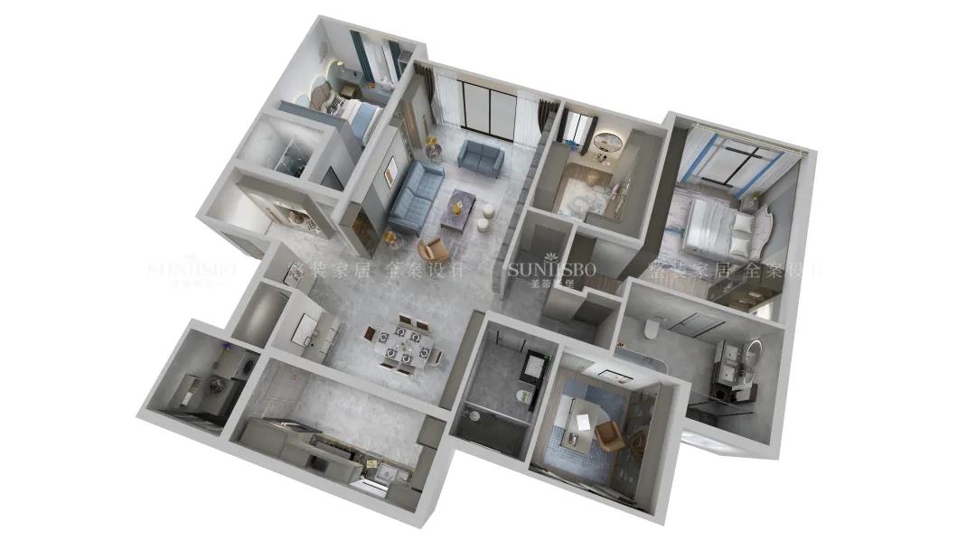 恒大四季上東|147㎡| 時尚簡奢|沈陽本案例是一套面積147㎡的三居室,位于遼寧省沈陽市,業主是一位從事繪畫工作者,深研過空間與色彩的關系,經過與設計師的溝通交流后,選定了沉靜的灰色調來表現空間的寧靜與放松。