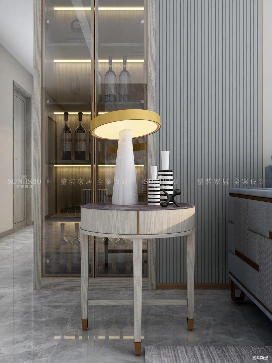 業主感言“之所以定位時尚簡奢風格,是因為它不同于大熱的現代風格,相比之下它更精致,更時尚,更具有美學腔調。這個空間設計不管是從家具設計,還是柜體紋理上,它的設計手法都注重把握了尺度與分寸,將簡奢獨有的特質注入每一個角落,讓空間充滿情調,是我心中的理想居所。”