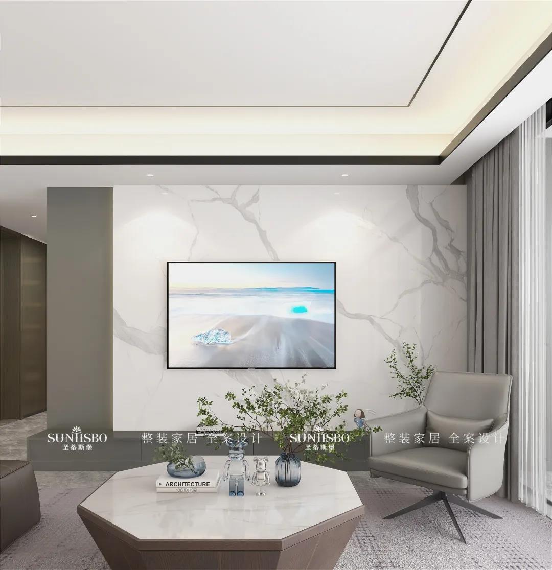 客廳根據業主太太的喜好而設計,茶幾采用純天然爵士白大理石,自然天成的石材紋理,通過留白的藝術表現手法,營造出自然靈動、沉穩時尚的意境。從細節處彰顯對生活的態度與追求,打造高品位的現代家居。
