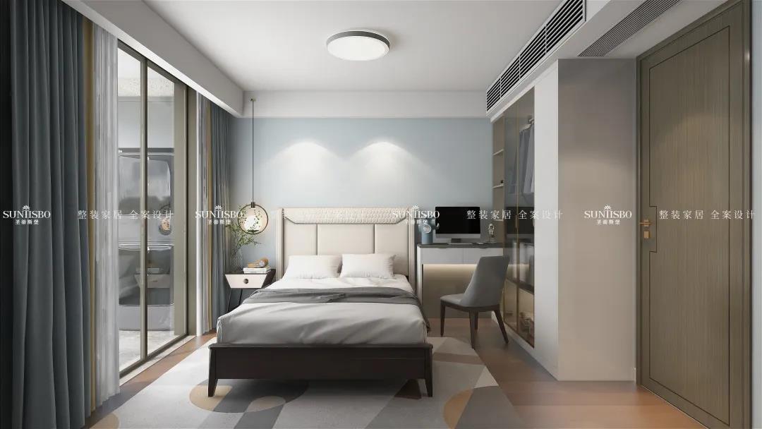 次臥是業主給爸爸媽媽預留的老人房,整體感覺都是比較沉穩的,配色方面也是容易助眠的顏色,真的是非常貼心啦~