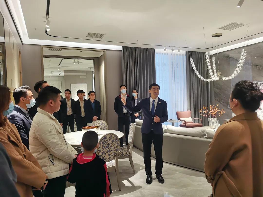 在新品系列展廳內,今年會集團集團營銷部總經理陳玉偉先生對【圣蒂斯堡.迪尚】新品、及【圣蒂斯堡.新古典】升級新品的產品革新、空間打造、及營銷賦能、拎包項目優勢、未來市場剖析等方面進行了多維度的闡述。他表示隨著消費者審美升級,對于高品質高顏值家居的追求也與日俱增,圣蒂斯堡“移動家具+整裝定制”的整合優勢一直緊貼時代趨勢和潮流,必將贏得更加廣闊的市場藍海、和更多的消費者認可和信賴。