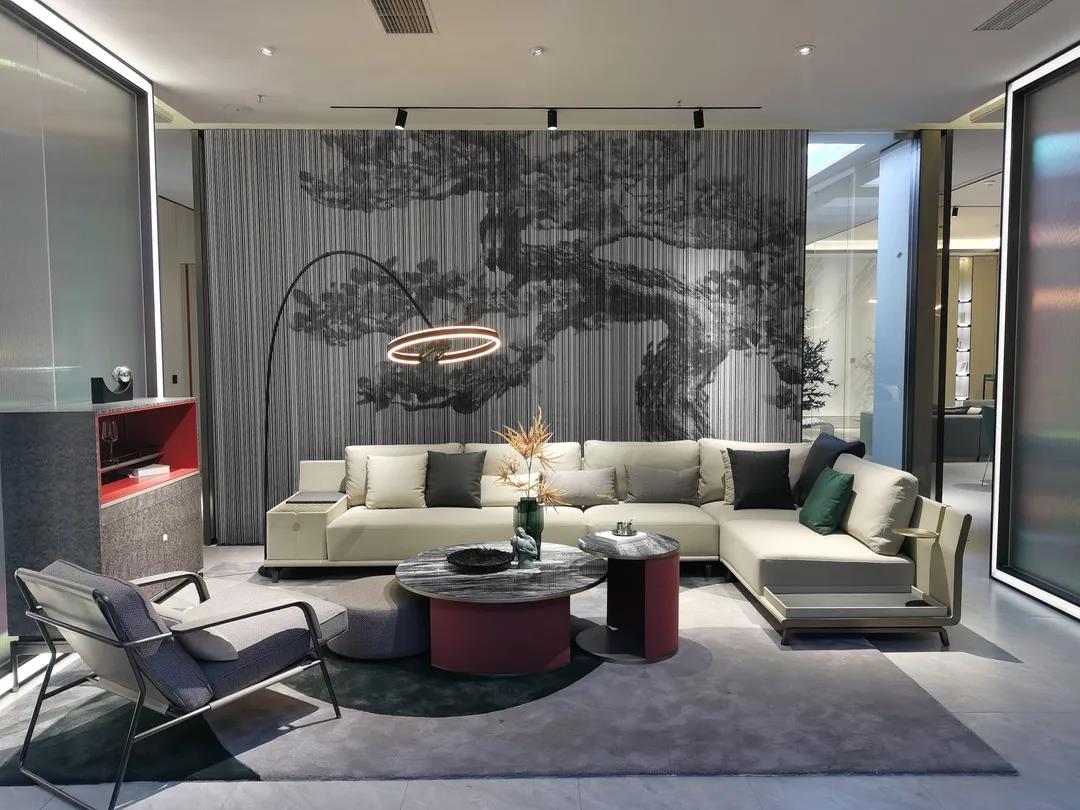 在展廳現場,各系列展廳極具潮流感的空間布局和場景設計,完美呈現了當下流行的空間組合和軟裝搭配思維;極具時尚品位的產品設計和色彩運用,賦予產品個性鮮明、多元混搭的時尚氣質,彰顯了圣蒂斯堡“整裝定制·全案設計”產品整合優勢和特色。